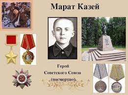 Марат Казей родился в белорусской деревне, ему было 10 лет, когда началась война. Боевые дела Марата начались в первый день войны Великой Отечественной войны.